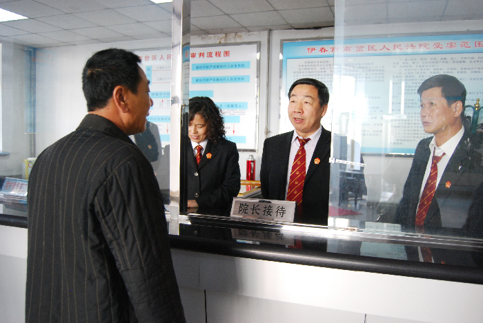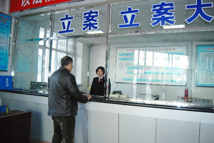 南岔法院注重司法便民工作,做到咨询有人答,电话有人接,诉讼有人引,材料有人收,案件有人查,纠纷有人调,努力使亲民、爱民、为民的形象深深镌刻在当地老百姓的心里。图为:立案大厅接待窗口,接待人员耐心解答诉