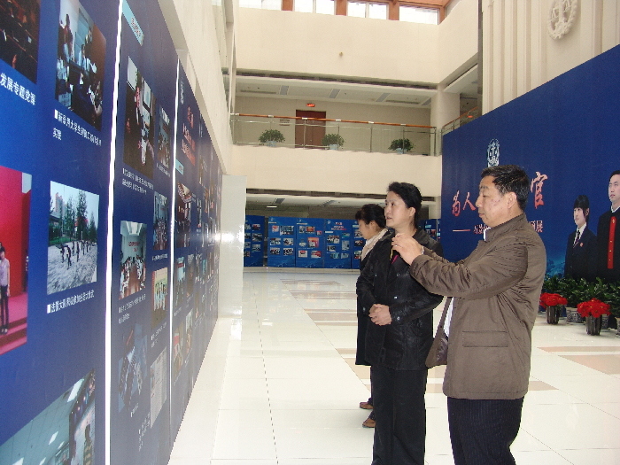 图为:李树国院长参观学习北京市石景山区法院文化建设展。