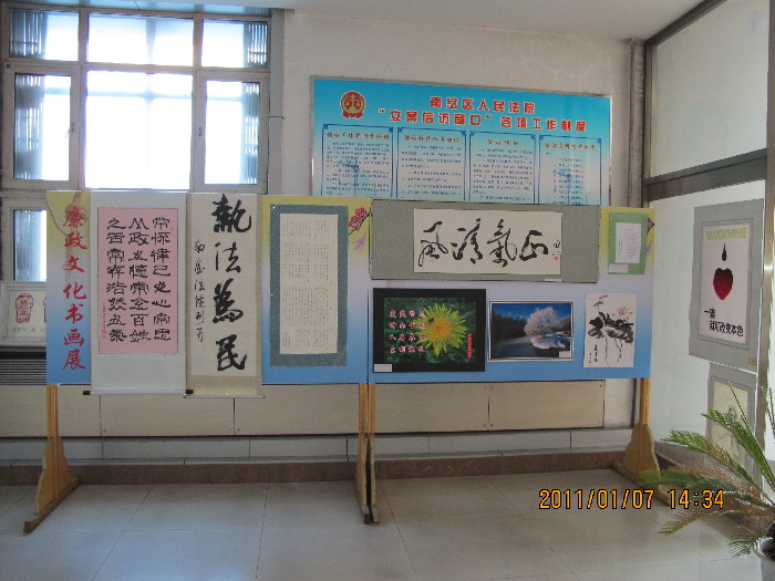 南岔法院积极开展廉政文化建设。图为:我院迎新春廉政文化书画展。