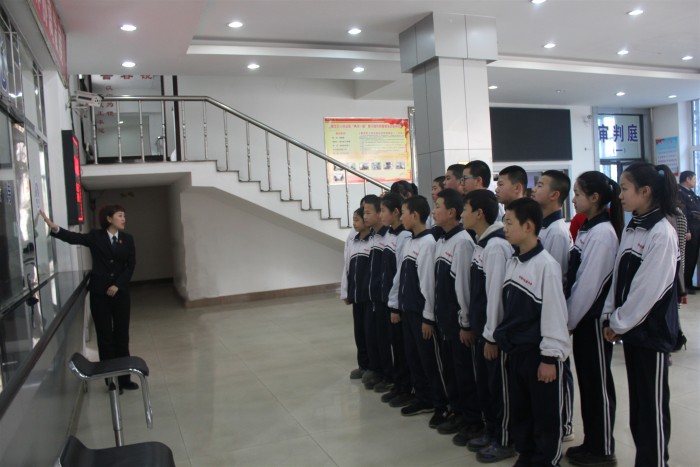 活动中,工作人员引导学生们依次参观了法警安检处、诉讼服务大厅、审判法庭和办公室等场所。在诉讼服务大厅,工作人员向同学们详细介绍了诉讼服务大厅的设施、功能和特点,并重点讲解了立案流程和注意事项。学生们积极发言提问,工作人员用通俗易懂的语言,与学生互动交流,让学生明白哪些行为是违法,哪些行为是犯罪以及所造成的恶劣后果,并向学生们宣传了扫黑除恶相关知识,教育同学们要提高鉴别能力、增强防范意识、文明上网等,告诫同学们“勿以善小而不为,勿以恶小而为之”。同时,让学生们积极动员家长参与到扫黑除恶专项斗争中来,一同打击黑恶势力。