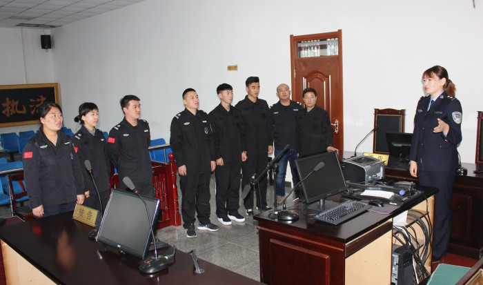 在工作人员的带领下,大家先后参观了诉讼服务中心、审判法庭、羁押室等区域。工作人员还向他们介绍讲解了“不忘初心、牢记使命”主题教育工作开展情况和“打官司不求人”等相关便民举措。