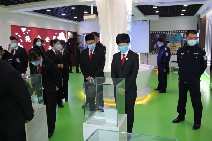 在禁毒教育基地展厅,干警们认真听取讲解员关于禁毒防毒知识的详细介绍,观看了各类毒品、制毒和吸毒工具。在讲解员的指引下,干警们借助馆内影像、光电感应及多媒体等技术手段,充分调动身体视、听、触等感官,使干警们对毒品危害有了进一步的认识,纷纷表示不仅要加强自身抵御毒品侵蚀的自觉性和主动性,还要积极参与到防毒宣传和禁毒斗争中来,切实发挥审判职能,严厉打击毒品犯罪。