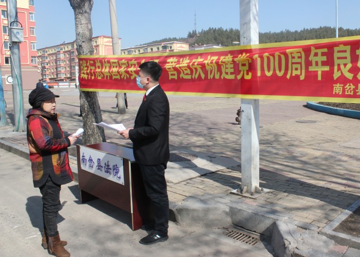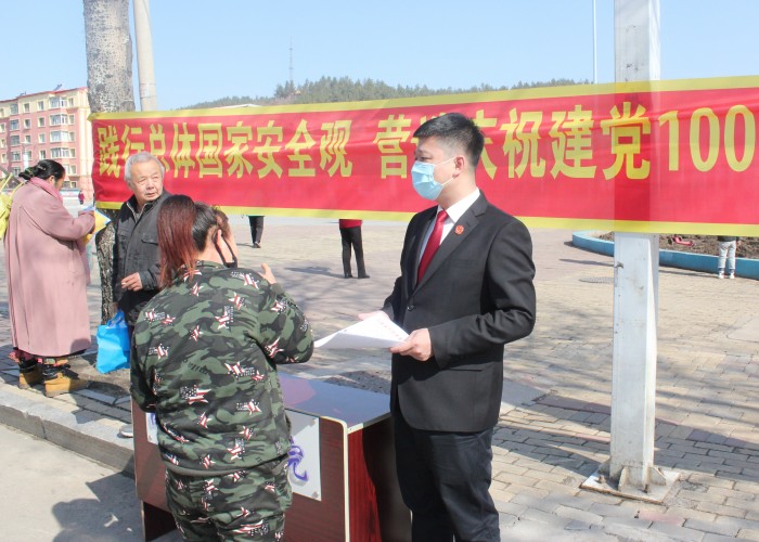 为进一步提高全民国家安全意识,营造国家安全宣传教育浓厚氛围,4月15日上午,南岔县人民法院组织干警到南岔县同心广场,以“践行总体国家安全观 营造庆祝建党100周年良好氛围”为主题开展“全民国家安全教育日”宣传教育活动。