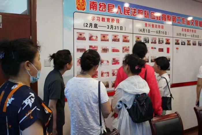 在讲解员的指引下,大家参观了队伍教育整顿活动室、诉讼服务中心、审判法庭,并在会议室观看了宣传片。社区群众对便民利民的诉讼服务,规范有序的办案流程有了新的认识,同时对法院队伍教育整顿工作有了更深入的了解。