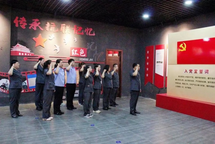 在誓言厅,全体党员面对鲜红的党旗,举起右手,庄严宣誓,重温入党誓词,再一次接受心灵的净化和洗礼,铭记初心使命,永葆共产党员的政治本色。
