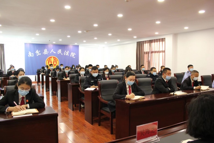 9月13日下午,南岔县人民法院召开全院干警大会,传达贯彻落实县委、全市法院“能力作风建设年”和优化营商环境专项行动工作推进会会议精神,扎实推进“能力作风建设年”活动和优化营商环境专项行动工作走深走实。会议由党组书记、院长郑建波主持,全院干警参加会议。