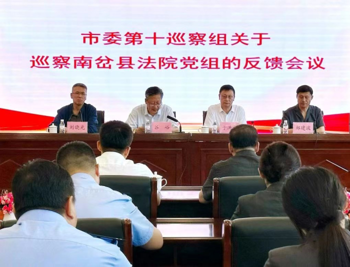 按照市委巡察工作统一部署,8月14日,市委第十巡察组巡察南岔县人民法院党组情况反馈会议召开。市纪委六室二级调研员于洪龙出席会议并讲话,市委第十巡察组组长谷峪反馈了巡察情况。南岔县人民法院党组书记、院长郑建波主持会议并作表态发言。市委第十巡察组成员、法院领导班子及全体干警参会。