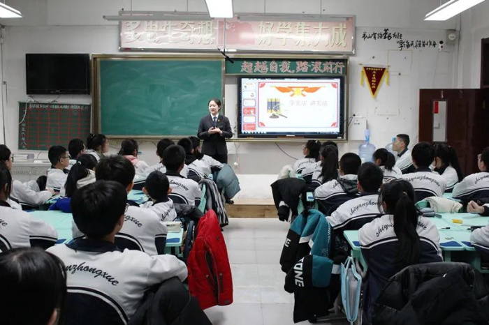 为推进校园法治建设,法治副校长走进实验中学,为学生们普及了国家宪法日和宪法宣传周的相关知识,引导同学们增强法治意识。并针对学生年龄的特点,结合审判实践,教育同学们要杜绝不良行为,远离违法犯罪,树立正确的世界观、人生观和价值观,养成学法、懂法、守法、用法的良好习惯。