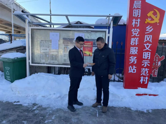 晨明法庭干警深入晨明村和邮政局,针对农村群众法治需求和普遍关注的热点问题,以案说法,积极发挥驻村法官前哨作用,用通俗易懂的语言向群众宣传宪法知识,耐心解答居民提出的法律问题,让老百姓对宪法法律听得懂、看得见、记得住,强化群众对宪法的认同感,着力推动矛盾纠纷源头化解,积极打造“无讼社区”。