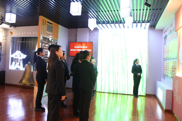 南岔县人民法院廉政文化展厅分为“党的反腐光辉历程”“领袖谈廉政”“尚廉篇”“警示篇”以及“清风篇”五个模块,全方位、多角度地展示了我国反腐倡廉的历史进程和当代实践。党员干警们通过观看发人深省的挂图刊板,驻足鲜活的基层腐败典型案例以及司法系统深入推进全面从严治党的各项举措和取得的丰硕成果,深刻认识到了党风廉政建设的重要性,进一步坚定了反腐倡廉、维护公平正义社会环境的决心。