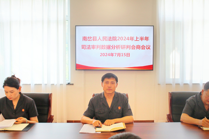 7月15日,南岔县人民法院召开2024年上半年审判质效会商会议,以数据“把脉”,以会商“开方”,回顾总结上半年工作情况,深入剖析问题及成因,安排部署下半年工作。党组书记、院长郑建波主持会议并讲话,党组班子成员、各业务部门负责人及全体员额法官参会。