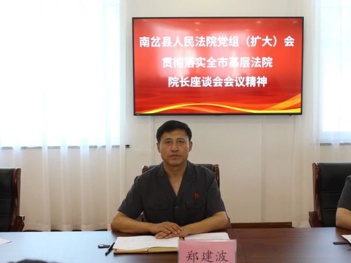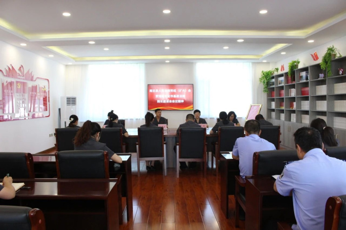 8月15日,南岔县人民法院召开党组(扩大)会议,贯彻落实全市基层法院院长座谈会暨全市法院执行工作半年总结会议精神,党组书记、院长郑建波主持会议并讲话,党组班子成员、各部门负责人、员额法官参加会议。