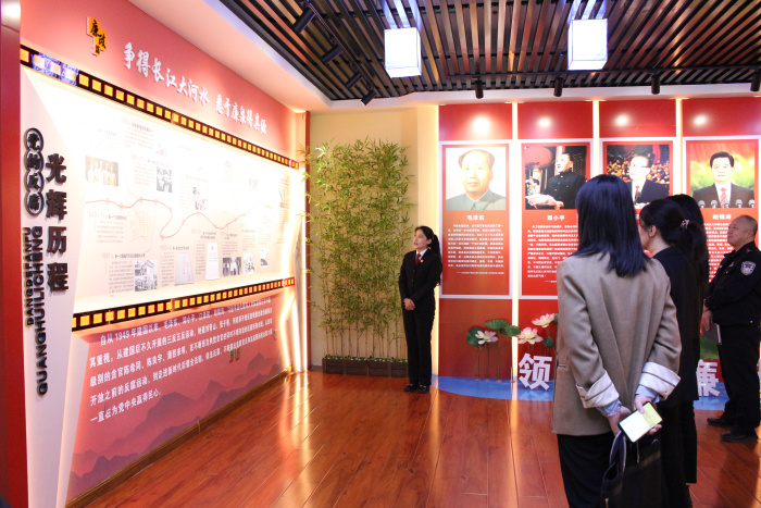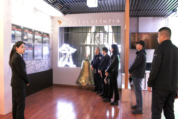 在引导员讲解下,一行人先后参观了党建活动室、党建文化长廊、廉政文化展厅等场所,亲身感受到了南岔法院在以党建引领审判执行工作方面的创新实践、在以科技赋能保障诉讼权益方面的便民高效服务。