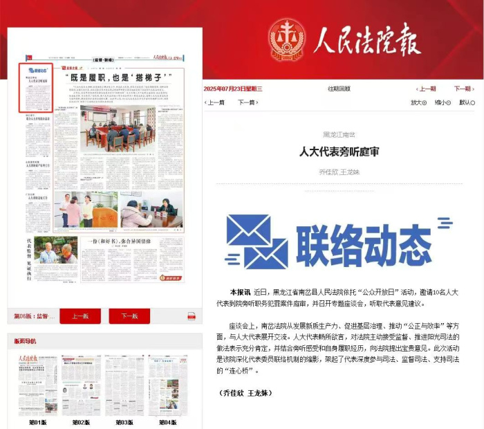 【媒体聚焦】《人民法院报》:人大代表旁听庭审 发布时间:2025-07-23 13:47:26