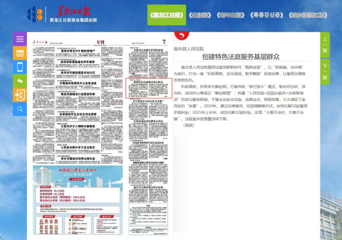 【媒体聚焦】《黑龙江日报》:创建特色法庭服务基层群众 发布时间:2025-09-30 16:15:46